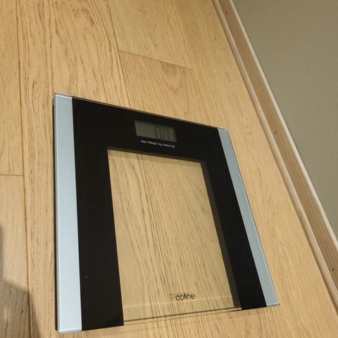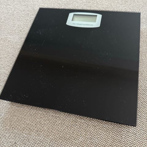 Baderomsvekt til salgs. Den har digital skjerm i tillegg til at den kan kobles til app hvor du kan sammenligne med tidligere data.