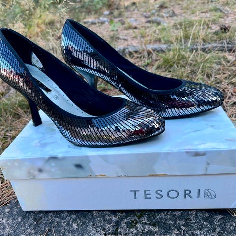 Det er et lite spor/merke bak på den ene hælen (se bilde)