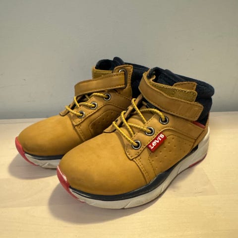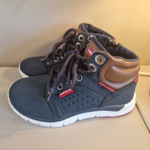 Levi's barnesko unisex i størrelse 24. Skoene har en brun farge med røde og hvite detaljer. Designet for barn, egnet for daglig bruk.
