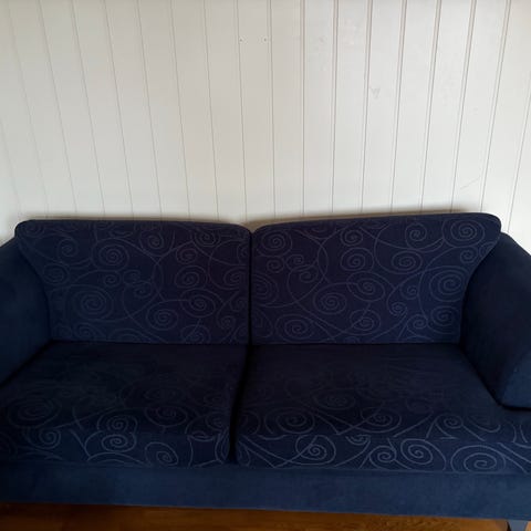 Stygg og skadet sofa gis bort. Må hentes og bæres ned fra 2. etg. av deg. Mål er ca.