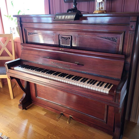 Unikt gammelt piano, med elfenben tangenter, fra 1844.