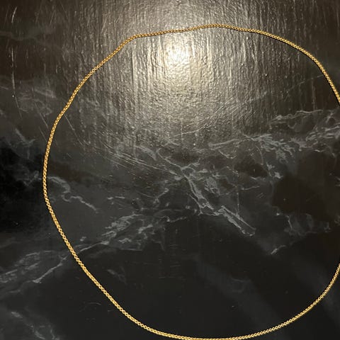 Selger denne fotlenken stemplet 585 og er nesten 25 cm lang.