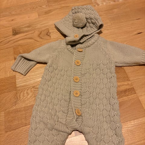 Hjemmestrikket og helt ubrukt! Den er strikket i Sandnes merinoull🤩 Strikket i størrelse 6 mnd, og skal være litt oversized så den passer lenge!