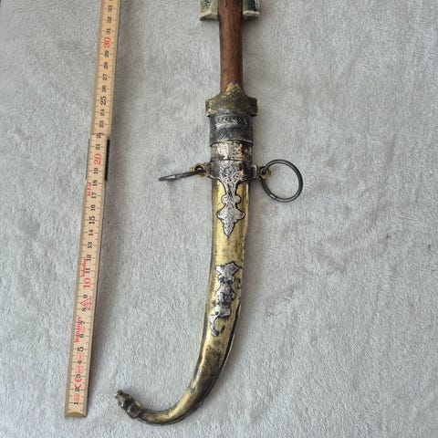 Kronenkrebs Solingen jaktkniv med blad i stål, skaft av hjortehorn og medfølgende skinnslire. Kniven har en total lengde på ca. 35 cm. Skaftet er utformet for godt grep, og sliren har rem for feste. Egnet til jakt og friluftsaktiviteter.hbo1500