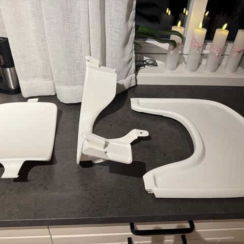Stokke Høy barnestol i blå farge. Stolen er laget i tre og har justerbare setehøyder og fotstøtte for tilpasning etter barnets størrelse. Malt blå, godt brukt. Kan trenge litt puss og ny maling men fungerer utmerket i mange år til. Solid kvalitet!