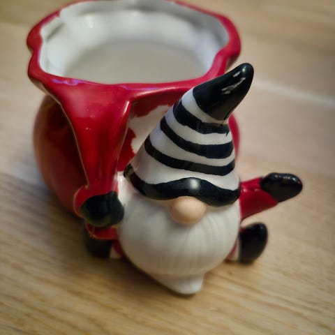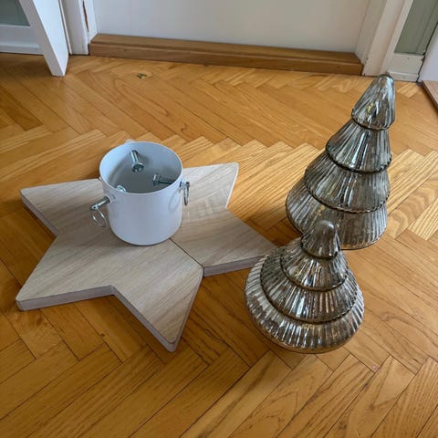 Den ble for liten. Diameter 55 cm (topp 40) høyde 22 cm.