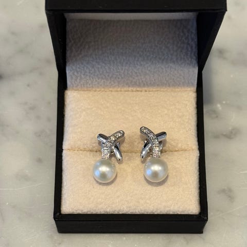 Disse elegante øredobber har et stilig krysset design, satt med glitrende diamanter.