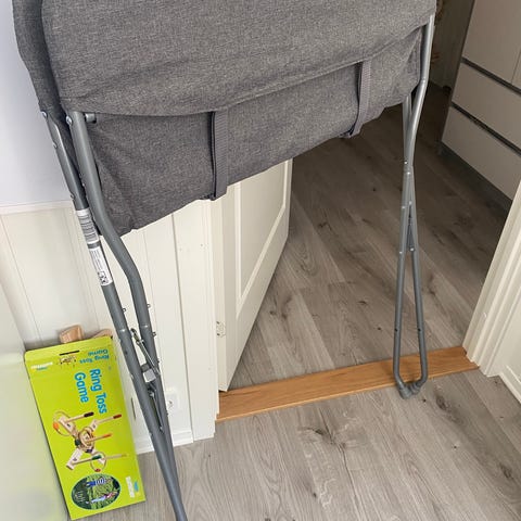 En flott elektrisk vugge med 5 forskjellige bevegelser og hastigheter. Alternativ til moonboon. Kan blant annet simulere biltur. Leken som henger over stolen mangler 1 av 3 baller.