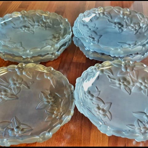 Seks flotte vinglass. Gul og blå stett. Ingen skader. Høyde 19 cm og diameter 8 cm. Selges samlet. Kan sendes om kjøper betaler porto.