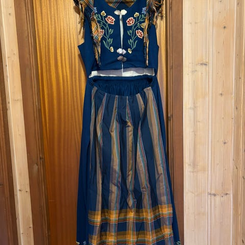 Med alt tilbehør, veske, sjal, forkle, skjorte, sølv