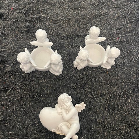 Selger to stk engler /lysholdere til telys fra 80-tallet selges samlet. Veldig dekorative med lys inni, og skikkelig vintage stil.
