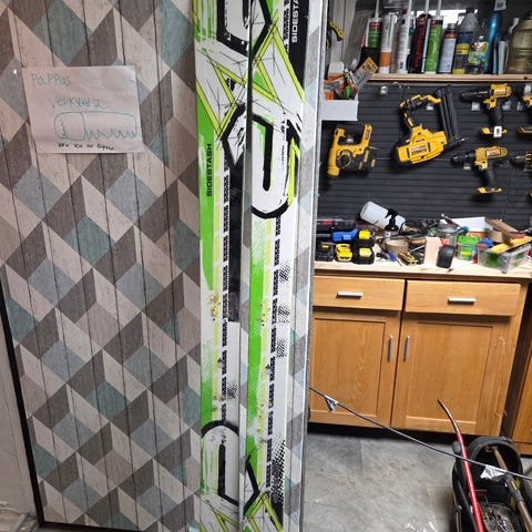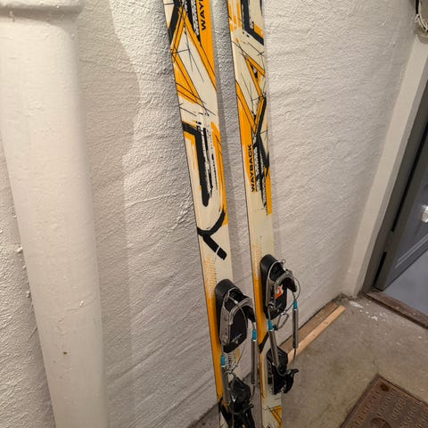 K2 Sidestash telemarkski, størrelse 181 cm. Klassisk telemarkbinding fra Rottefella. Synlig brukt med noe rust på stålkantene. Gode ski, men trenger en runde prepping og sliping av stålkanter.