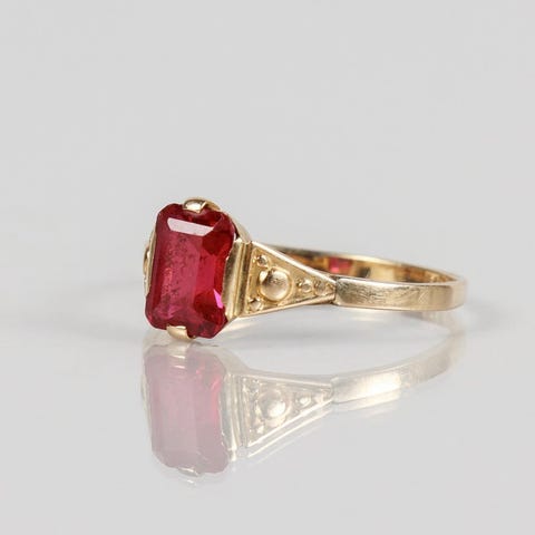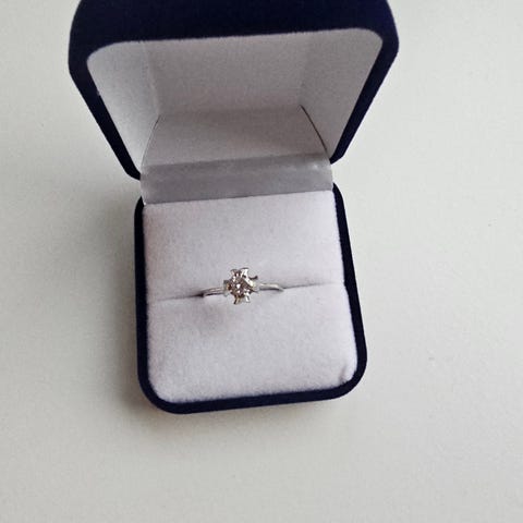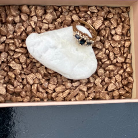 Morsomt CARMORING, 18k gull med safir og 6 små briljantslipte diamanter.