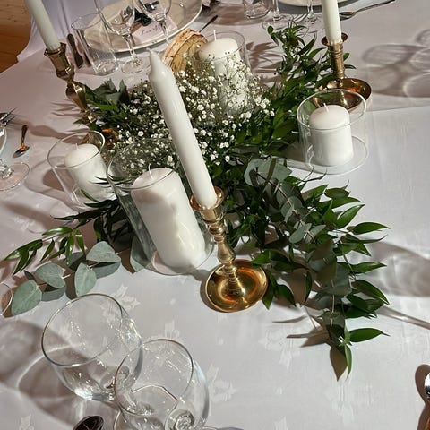Har også flere annonser ute med glass, vaser og lysestaker fra bryllupet.
