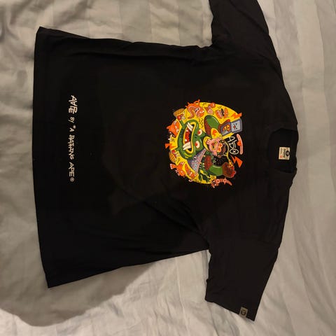 A BATHING APE T-skjorte i størrelse M, svart farge, laget av bomull. Kjøpt på Stress i Oslo. Prisen er for begge. PS’, Str. er ikke stor.
