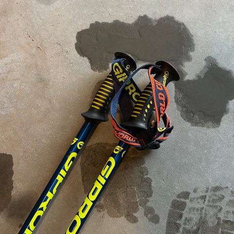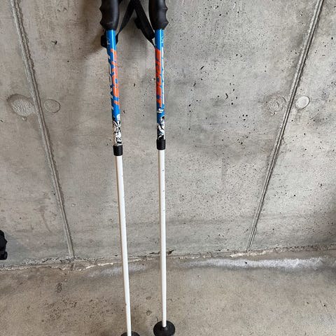 Gipron teleskopstaver med lærtrinse til salgs. Maksimal lengde 155 cm