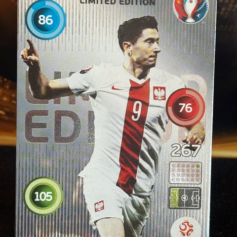 Panini Adrenalyn XL 2021 Kick Off Official Trading Card med motiv av Robert Lewandowski (forward). Samlekort utgitt i forbindelse med UEFA Euro 2020.