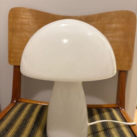 Selger to stilrene og moderne sopplamper i lys grønn/mint farge. Lampene er svært lite brukt og fremstår som nye, uten noen synlige merker. Lyspærer følger med.