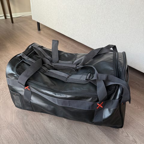 Godt brukt, men fortsatt i god stand. Alle glidelåser fungerer som de skal, og ingen hull eller større skader. Normal bruksslitasje innvendig.