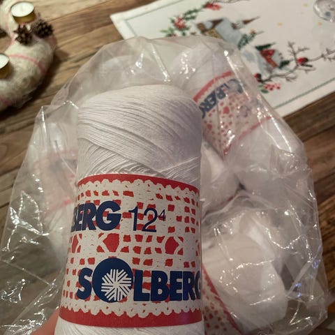 19 stk 100 grams Solberg 12/3 fnr 1001 natur, alle i samme innfargingsparti. Løpemengde pr nøste ca 670 m, anbefalt heklekrok 1- 1,25. Selges kun samlet, prisen er satt, ingen vits i å underby
