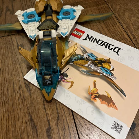 LEGO NINJAGO 71770 Zane's Golden Dragon Jet byggesett med komplette minifigurer. Kun pose 1 er åpnet og bygget, pose 2 og 3 i ordinær, uåpnet pose. Uten byggeanvisning (bruk Lego.com eller Lego Builder app).
