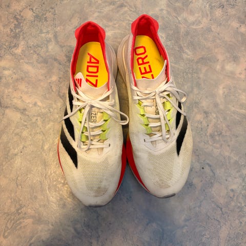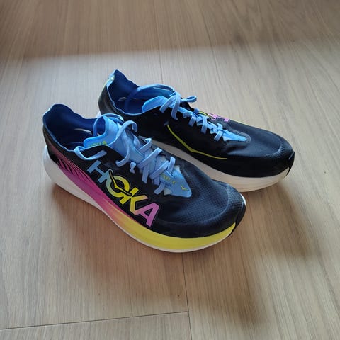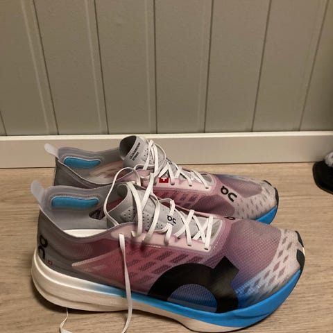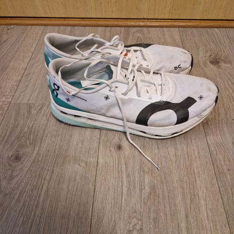 On Cloudboom Strike str 45, løpt ca 400 km på disse. Fortsatt bouncy og gode.
