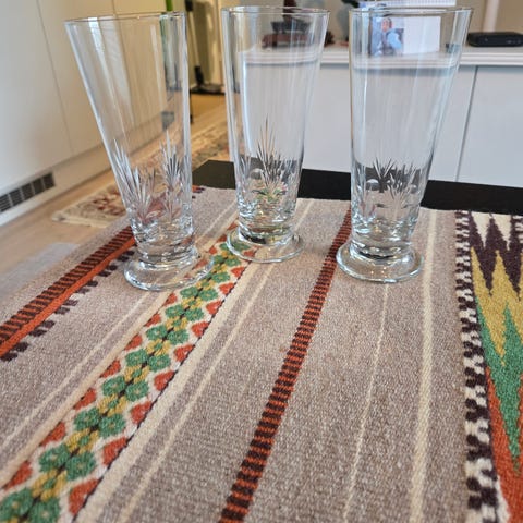 Gilde akevitt glass fra Hadeland glassverk og Braastad Cognacglass