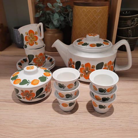 4 stk med lite bruksspor. 2 har lite utfylt glasur på kant, ingen nag skår.