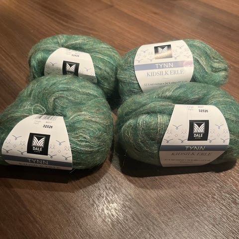 Dale garn Tynn kidsilk erle, Farge 4016. Litt lysere enn på bildet. Selges samlet.
