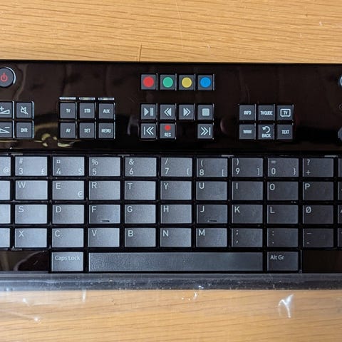 trådløst tastatur designet for bruk med eldre Altibox TV-dekodere, spesielt nyttig for søkefunksjoner og navigasjon.