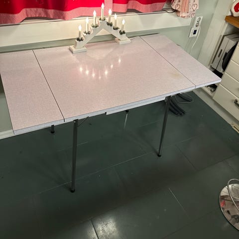 Veldig søtt, vintage respatex bord i god stand! Kan trekkes ut, og blir da 113 cm bredt.