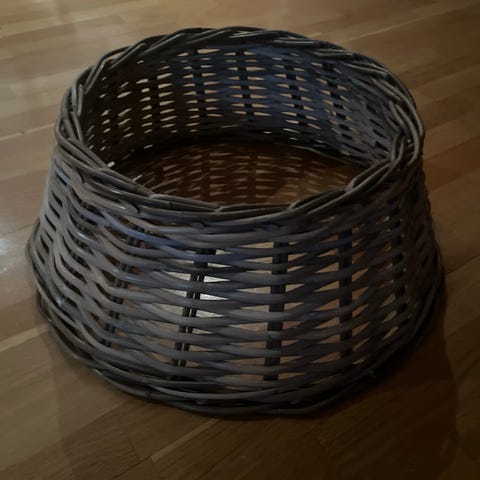 Pent brukt juletrefotskjuler. Ikke synlig brukt, men brukt et par sesonger. 28 cm høy, øvre diamanter 42 cm, nedre diamanter 63 cm. Hentes på Oppsal.