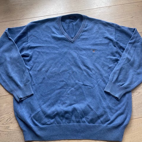 GANT V-hals genser i bomull, størrelse 3XL, farge grå og blå. Genseren har en klassisk V-hals og er laget av bomull.
