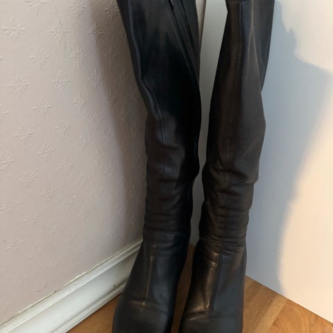 Støvler str. 41 svart skinn. God vidde rundt leggen.
