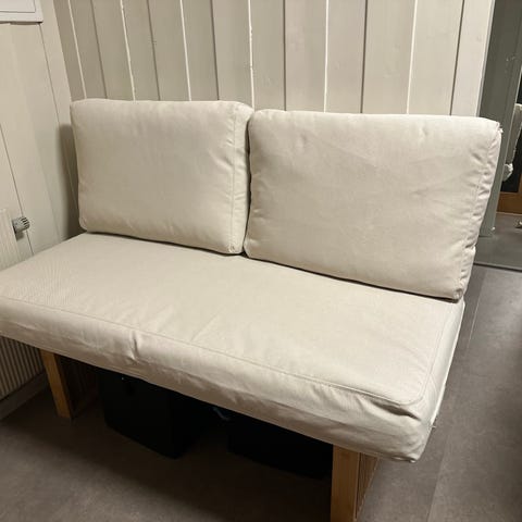 Den har komfortable, faste puter og en solid konstruksjon med vakre nagledetaljer langs fronten. Slanke, mørke ben gir en fin kontrast og et lett uttrykk. Sofaen er like godt egnet i stue som i entré, gang eller soverom. Det er også mulig å bytte til høye ben (medfølger ikke) og bruke den som spisesofa.