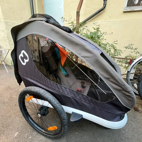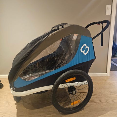 Pent brukt Hamax Outback sykkelvogn. Kan brukes som sykkelvogn, trillevogn og joggevogn. God fjæring, romslig plass og høy komfort for barnet. Stabil og trygg, med god ventilasjon og værbeskyttelse.
