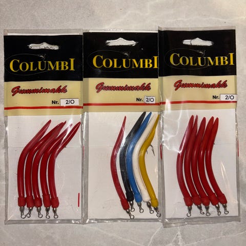 Marinor Kroksett Gummimakk kroksett i størrelse 7/0 med gummimakk i flere farger (rød, grønn, hvit, svart). Produktet er beregnet for fiske og leveres i pakker med flere sett.