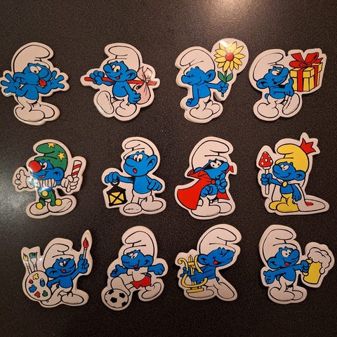 Vintage Smurfene klistremerker – komplett sett – 1970/80-tallet