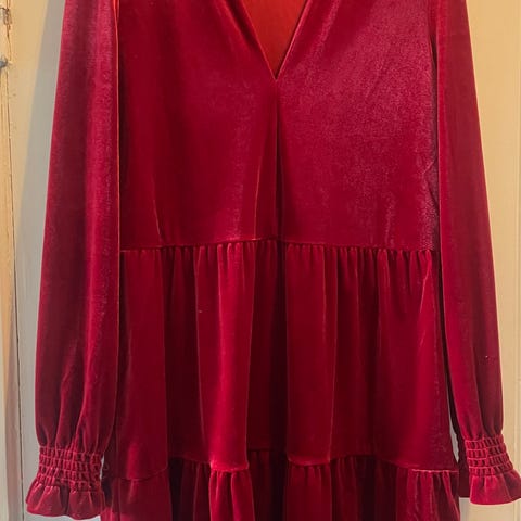 Va Vite Festkjole i størrelse L, rød farge, laget av polyester. Kjolen har lang erme og er designet for kvinner.Som ny ,kan sende mot porto