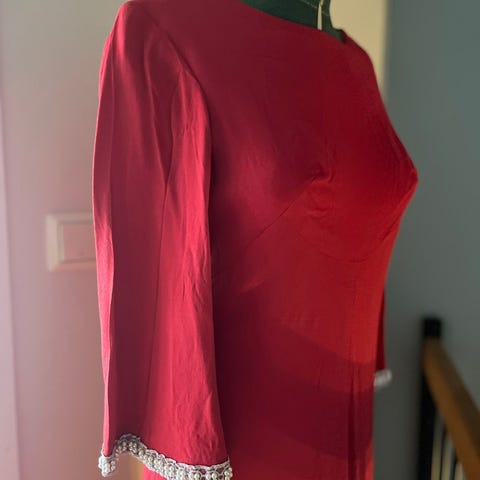 Beautiful red long exclusive dress with gold sequines and amazing pearl embroidery and details. Splits at the sides. Ancle long. Size 38/ 40