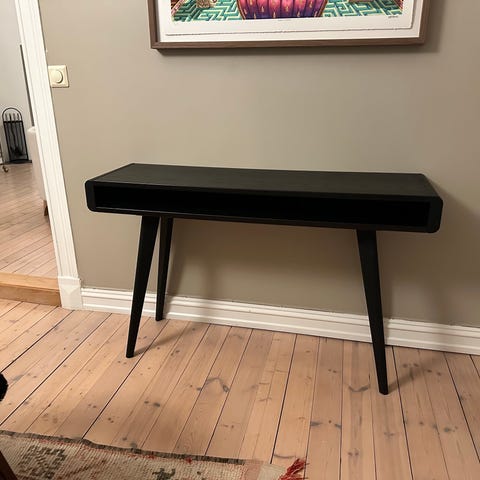 Straight konsollbord med 60 cm bredde er et lite konsollbord perfekt til rom med mindre plass. 25cm dybde, 75 cm høyde. Den klassisk sorte fargen passer inn i de fleste stiler og kan enkelt implementeres med dine favorittelementer. Bordet er praktisk avlastning i gang, på soverom eller i stuen.