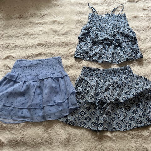 Jeg selger dette super søte sommer skjørtet fordi det er for lite❤️ Det står på lappen at den passer 11-12 år⭐️ Det er nesten ikke brukt å i god tilstand🌸