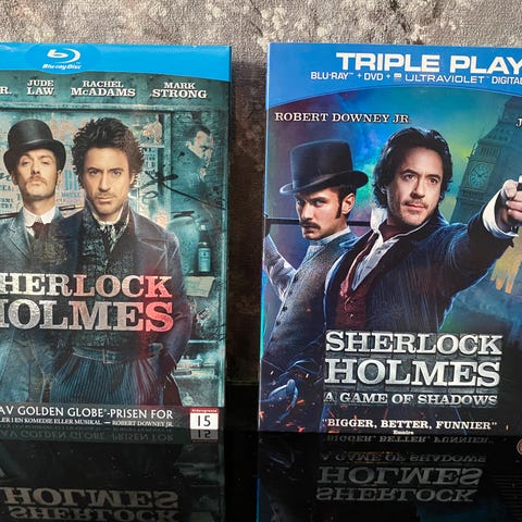 Sherlock Holmes 1 og 2 blu-rays, brukt 1 gang.