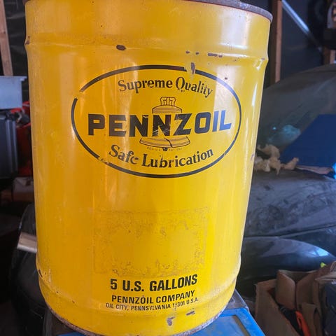 Oljefat i stål. Tomt.
