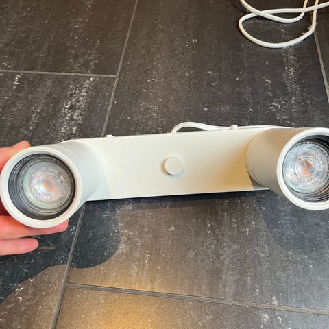 Selger to stk nydelige Baderomslamper Led innebygd og med IP44. LED x 3 max 3,3 W. De er strøkne og fungerer 100% og enkel montering. Selges på grunn av overgang til spotter. Lampene kan brukes til alle rom som foreklempel gang/entre, kjøkken etc. Selges for 300 kr pr stk.