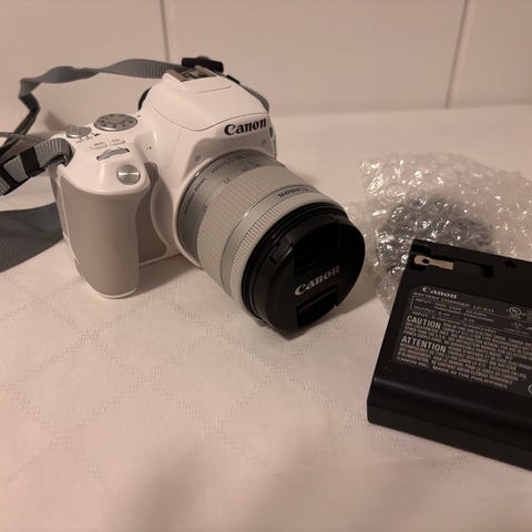 Canon EOS 100D speilreflekskamera med objektiv, svart farge. Lite brukt, som ny! Følger med kameraveske, lader og batteri med kameraet.
