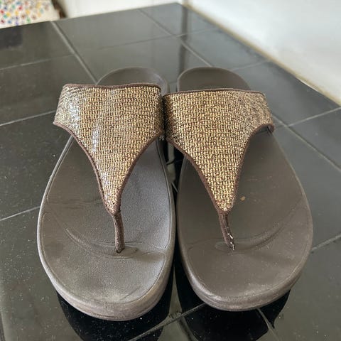 Nesten ubrukte Fitflop slippers/sandaler med bittesmå grålilla paljetter.