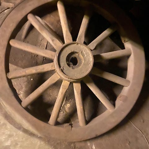 Dette jernet er laget hos Gjøvik støberi, og må være laget omkring 1890. Innskriften på platene er nemlig en G og en V med en krone over. Det står for kronprins Gustav av Sverige og Norge, den senere Gustav 5., og hans ektefelle Victoria av Baden. De giftet seg i 1881. At det er kronprisen og ikke kongen det dreier seg om ser man ved at kronen er en arvefyrstekrone, ikke en kongekrone. Vil tro at det er en form for goro det er laget til.