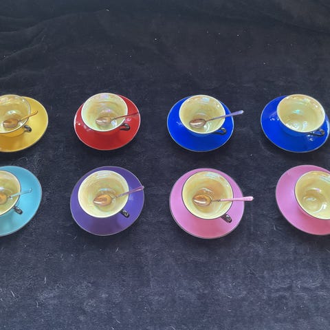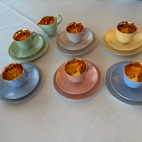 Vintage Arcopal mocca kopper i pastell