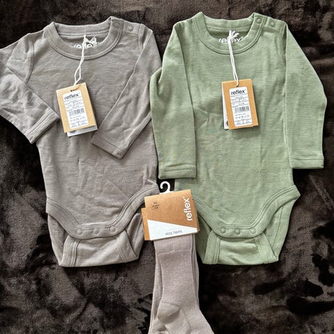 Har kjøpt den i fjør og rakk ikke å bruke den ble for liten ! Eventuelt kan bytte med en andre ull sett for jenter i str. 80